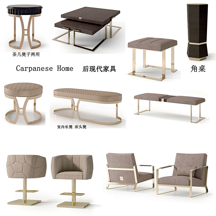 Carpanese Home 三款長桌辦公桌大班桌餐桌新款 不銹鋼電鍍金色實木