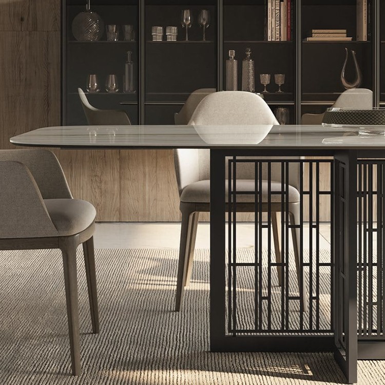Mastertable is an oval table made of stoneware. ? The support of Mastertable is reminiscent of the lines of Oriental screens. ? It is formed by two 'L' shaped elements with a distinct profile, subtly worked inside, placed opposite to each other to facilitate seating.?