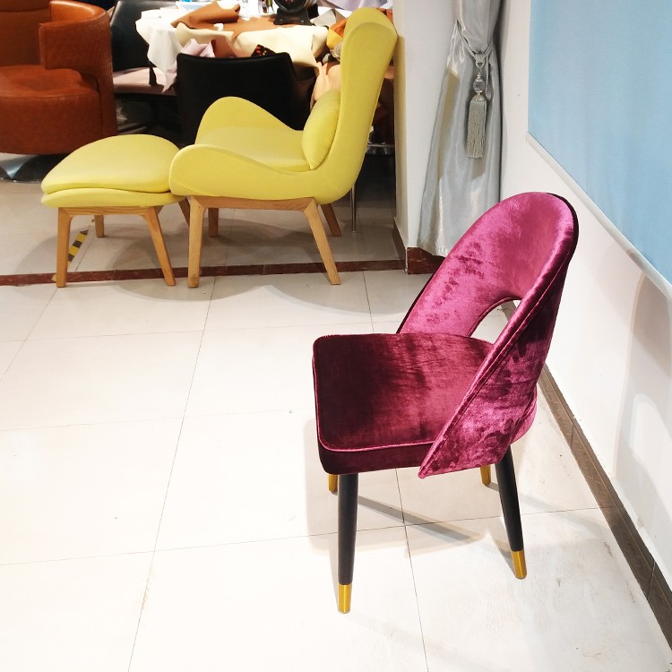 現(xiàn)貨絨布 設(shè)計(jì)師輕奢極簡(jiǎn)現(xiàn)代餐椅 客廳酒店餐廳家用金色腳樣版房