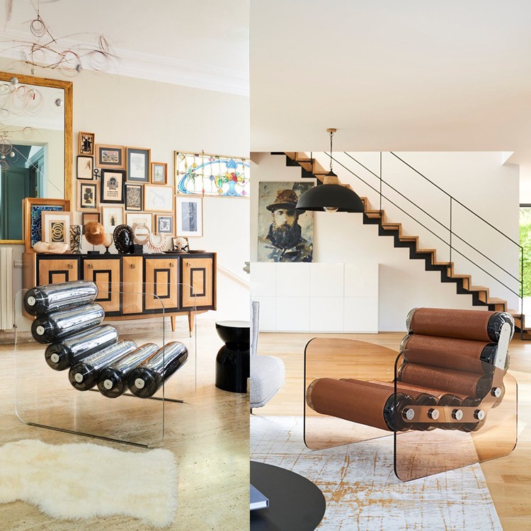 The classic collection is declined with transparent tempered glass or colored "sécurit" glass, on which Mojow installs TPU cushions among 6 colors. ? With the possibility, as an option, to partially cover the cushions with fabric covers.?