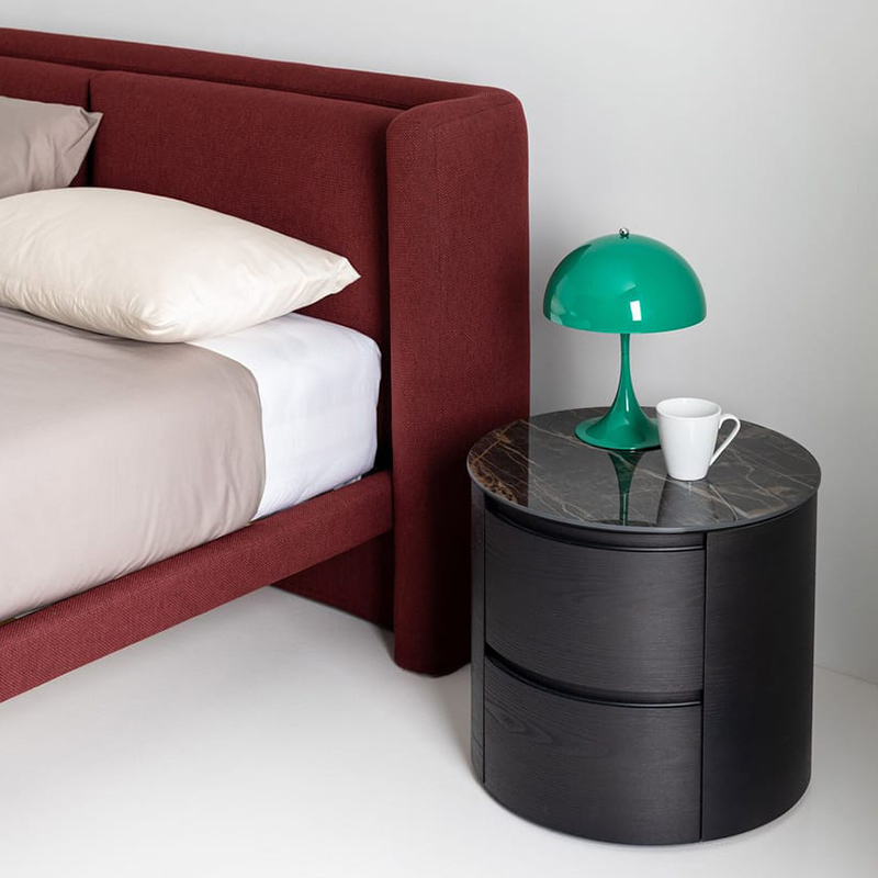喬爾床的形狀豐富,結(jié)構(gòu)堅(jiān)固,在熱情好客和穩(wěn)定性之間達(dá)到了平衡。? 皮革和織物之間的對(duì)比通過(guò)定義一種由堅(jiān)固形狀和柔軟體積組合而成的美學(xué),增加了視覺(jué)寬度。?