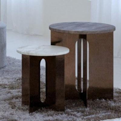 10款意大利Scandal茶幾 實(shí)木不銹鋼大理石 新中式意式復(fù)古鏡面圓形金色拉絲邊幾