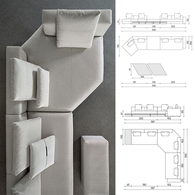 - 意大利3款沙發(fā)Ramón Esteve雙人MDF Italia三人多人L型組合茶幾桌子Laviani不銹鋼框架