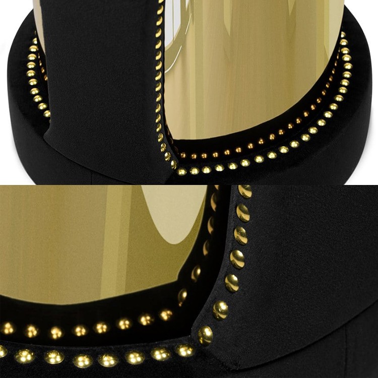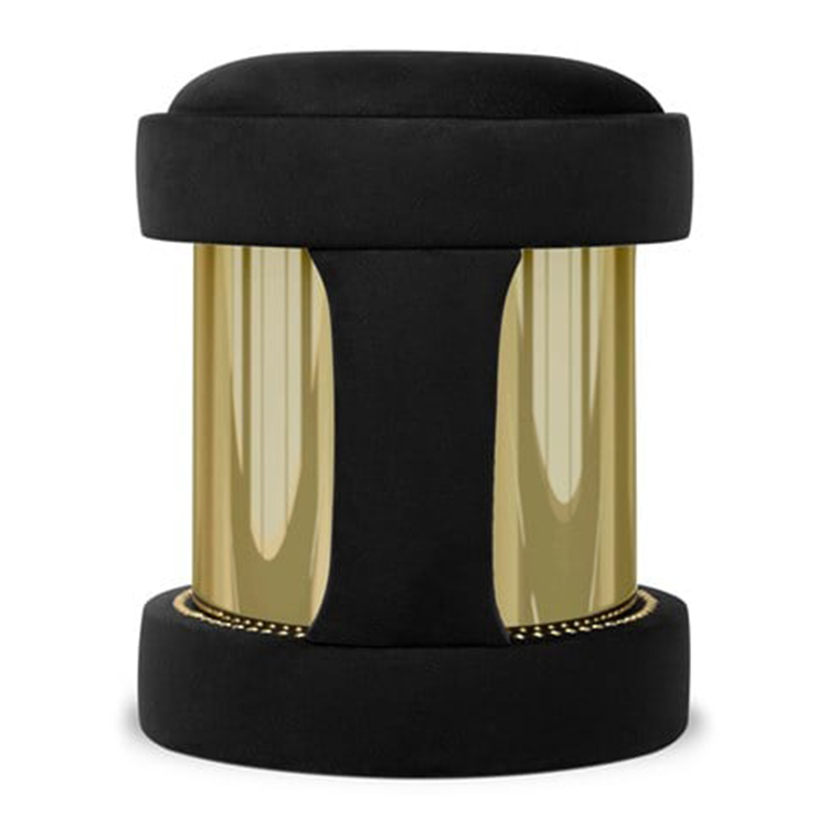精心運(yùn)用甜美的黑色天鵝絨觸感和熱情的設(shè)計(jì),打造出精致的軟墊。鍍金黃銅飾面給這款奇妙的凳子帶來了額外的奢華感,