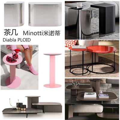 12款Rodolfo Dordoni茶幾Paola Navone不規(guī)則實木五金邊幾意大利設(shè)計彩色粉色古典