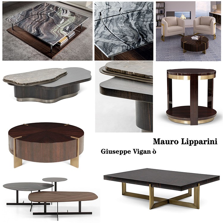 2024年10款Giuseppe Viganò 實(shí)木作不銹鋼Mauro Lipparini輕奢茶幾 圓形方形鋼化玻璃 斯特羅