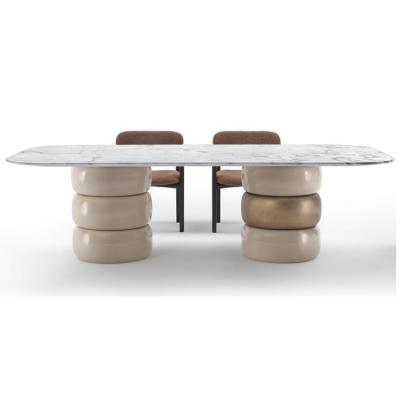 圓形大理石休閑桌。現(xiàn)代、有機、近乎雕塑般的形狀為特征。