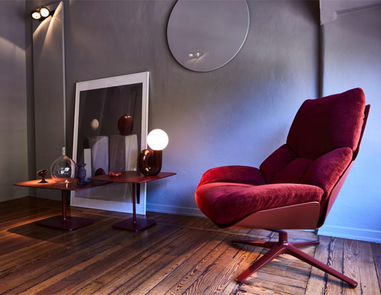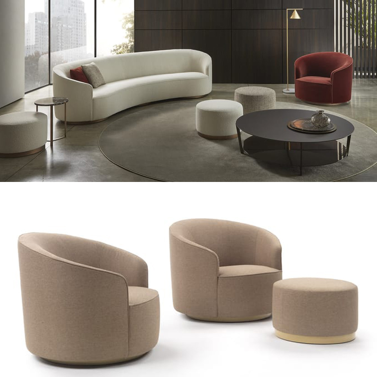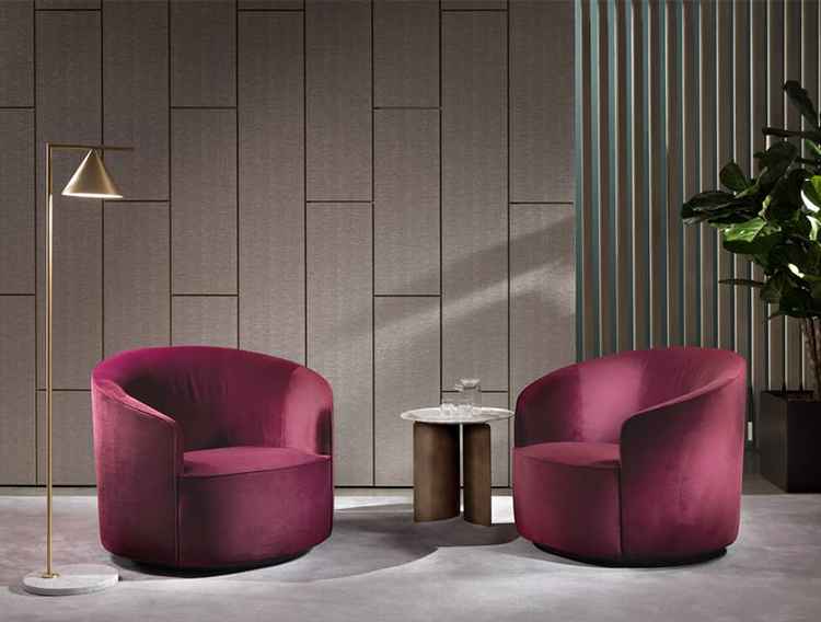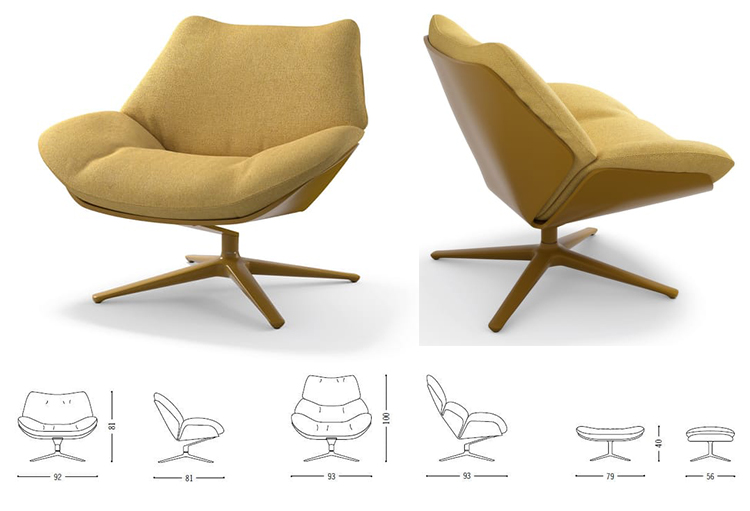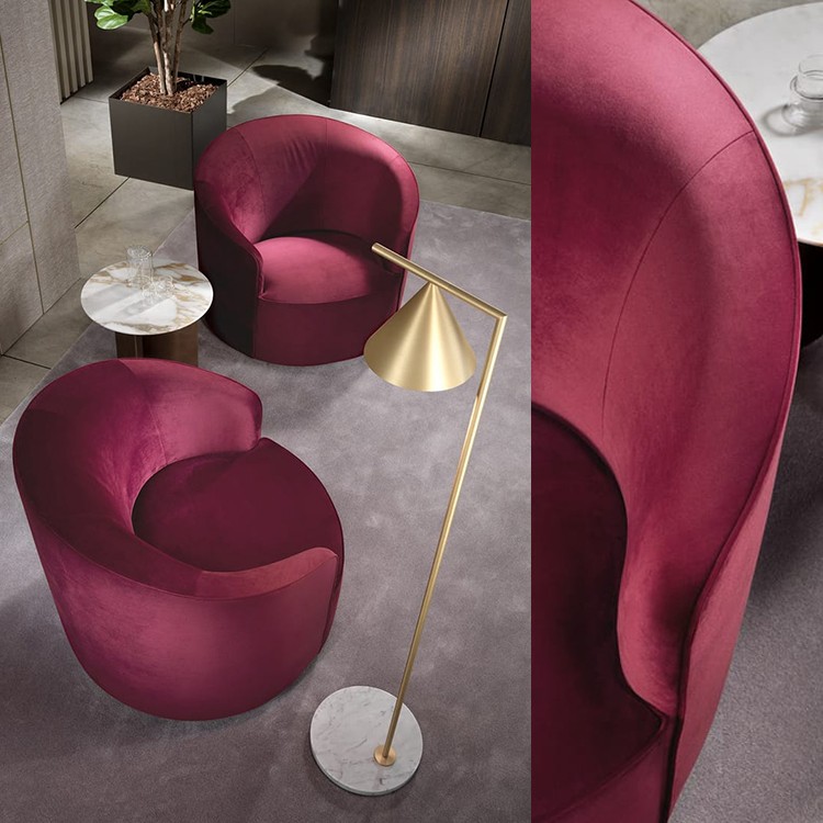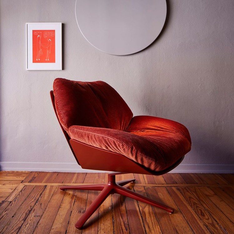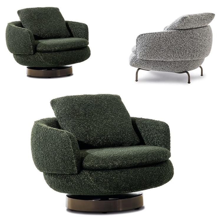 Vivienne是一款帶扶手的旋轉(zhuǎn)織物扶手椅。包絡(luò)形狀起源于靠背的半圓形曲線,在體積和重疊的相互作用下,創(chuàng)造了一種雕塑般和溫馨的美學(xué)。扶手椅以其精致的比例,具有精致的裝飾吸引力。一件軟墊家具,可以輕松融入任何環(huán)境,在住宅和酒店環(huán)境中創(chuàng)造舒適的對話區(qū)。