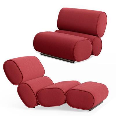 Roller織物軟墊扶手椅。由躺椅、扶手椅、腳凳和雙腳凳組成的軟墊家具家族。支撐結(jié)構(gòu)由鋼制成。