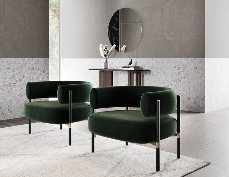 ZUNI天鵝絨扶手椅線條大膽,將優(yōu)雅與精致融為一體。一件在現(xiàn)代和經(jīng)典環(huán)境中有機(jī)融合的家具。