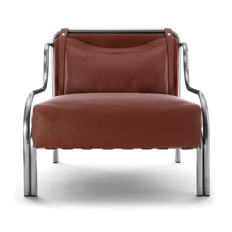 這款Stringa扶手椅的輪廓以柔和的曲線、寬大的座椅和被墊子軟化的靠背為特征,溫暖、熱情,具有明顯的20世紀(jì)60年代風(fēng)格。軟墊核心非常舒適和防水,位于管狀不銹鋼框架上外罩是皮革還是織物。