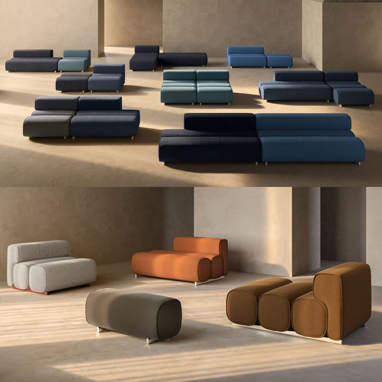 BLUES 扶手椅可靈活運(yùn)用于不同場(chǎng)景之中。外側(cè)背部皮與內(nèi)側(cè)布藝相組合,通過(guò)旋轉(zhuǎn)底座可體驗(yàn)不同方向上的舒適坐感。