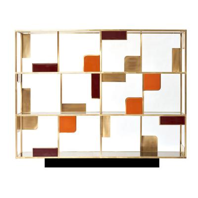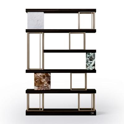 設(shè)計的雙面壁書架,不同類型的緞面黃銅和大理石