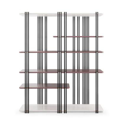 雙面書架Cage Pure是一種輕盈通風的構(gòu)圖,交替和相交的線條相互作用,有助于其滲透性和環(huán)境的流動性,