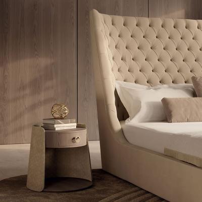 套房床頭柜以豪華皮革嵌件裝飾,散發(fā)出精致和精致的氣息,為任何臥室環(huán)境增添了一絲奢華。其光滑柔軟的質(zhì)地帶來(lái)了一種觸覺(jué)體驗(yàn),而復(fù)雜的工藝則創(chuàng)造了一種藝術(shù)感和威望。配有兩個(gè)抽屜,提供了實(shí)用的存儲(chǔ)解決方案。