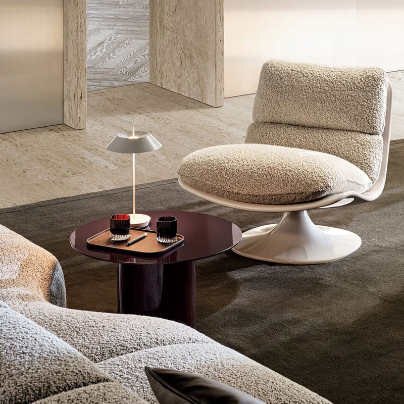 Pattie將框架和內(nèi)飾結(jié)合在一起,既舒適又現(xiàn)代,線條脫穎而出。扶手椅由寬大的緩沖墊,表現(xiàn)出極致的柔軟和舒適。外殼采用光滑的漆面,位于一個(gè)呈螺旋形的中心旋轉(zhuǎn)底座上,這是一種將方形的剛性與圓形的彎曲性融為一體的幾何形狀。憑借其高度的裝飾吸引力,Pattie以原創(chuàng)的調(diào)色板照亮了生活氛圍,適合作為真正的主角融入任何環(huán)境。