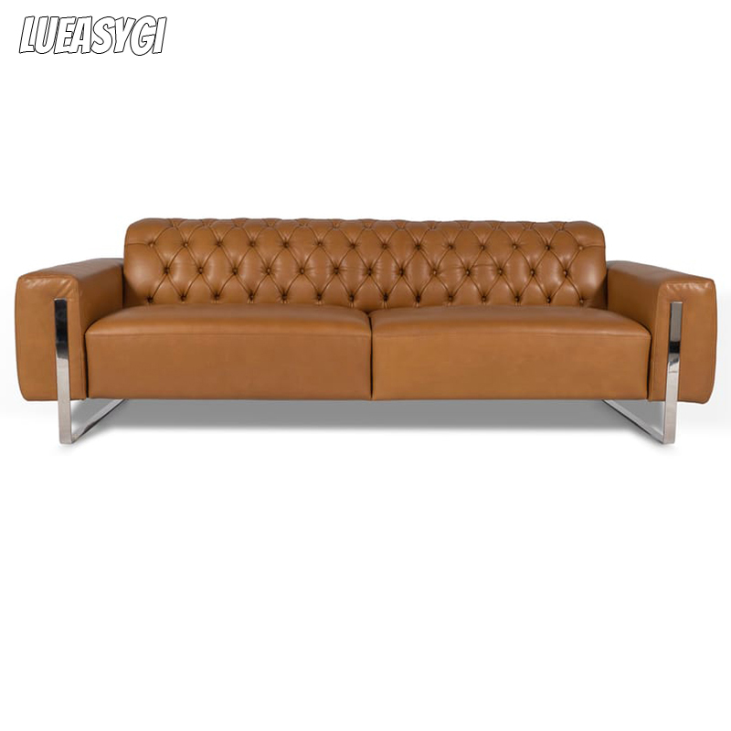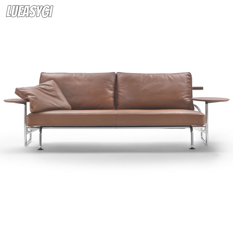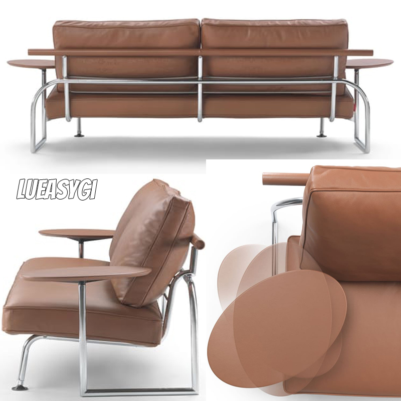 帶襯墊的結(jié)構(gòu),外部扶手為管狀金屬,呈環(huán)繞式,部分覆蓋著面料,這是一種特殊類型的可持續(xù)抗菌再生皮革,與主沙發(fā)內(nèi)飾的顏色相匹配或形成對比。
