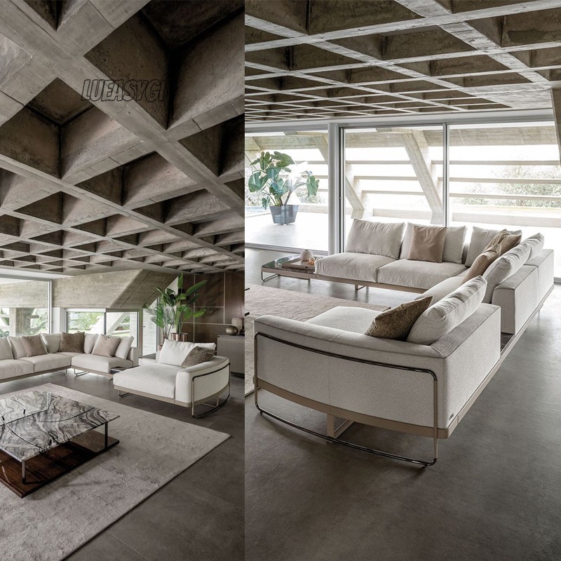 Futura組合式軟墊沙發(fā)系列柔軟而又沉穩(wěn)大方,金屬底座的線條與獨(dú)立的軟墊部分完美銜接,與大理石頂面渾然天成,幾何金屬沙發(fā)腳與對角線設(shè)計碰撞出創(chuàng)意火花,讓整體設(shè)計形象變得輕盈靈巧。