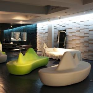 Ross Lovegrove has created public seating that has all the character of an exuberantly lively sculpture, with forms designed to engage the emotions. And its very generous dimensions allow it to seat up to ten people at once. The bench is made from rotation-moulded polyethylene, a 100% waterproof material that is dyed during the manufacturing process to give a broad spectrum of attractive colours.