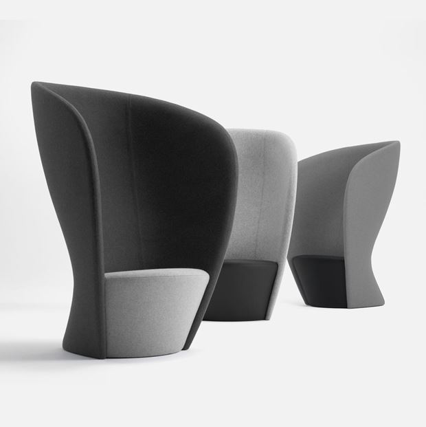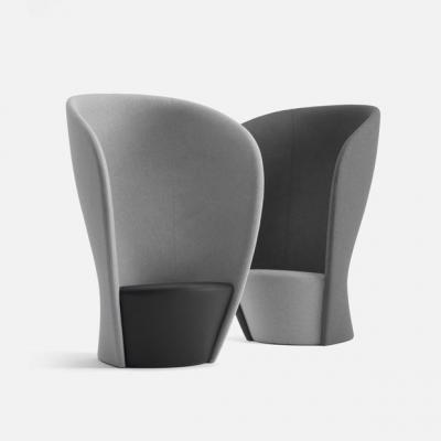 A lounge chair for either contemplation or communication. Shelter is a sculptural piece of furniture. By its quality in shape and design it also offers a high level of comfort. The high back surrounds the user and offers a luxurious isolation from the surroundings. It is perfect for private communication by e-mail, Skype or phone. Shelter creates a small oasis from disturbing surroundings. It is also possible to create a small intimate sphere when more Shelters are put together. The piece is poetic, organic and dynamic and unites the concepts that need unifying to obtain perfection.