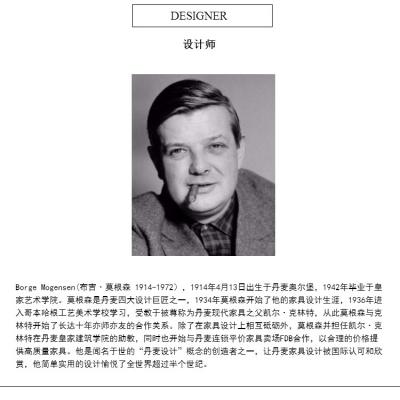 布吉·莫根森(Borge Mogensen)是丹麥住名的家具設(shè)計(jì)師,1914年4月13日出生在丹麥奧爾堡。他的簡單功能設(shè)計(jì)等到了世.界的認(rèn).可。