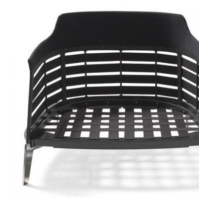 櫸木制成的座墊的彈簧裝置由一系列彈性皮帶組成,這些皮帶環(huán)繞鋼結(jié)構(gòu)靠背的四周,可以使座椅更舒適。鋼質(zhì)的構(gòu)架和支腳均經(jīng)過了釕涂層處理。輪廓又輕又薄,似乎是用鉛筆勾畫。