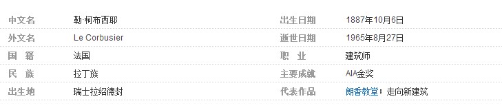 柯布西耶本名查爾斯?艾德華?吉納瑞特(Charles Edouard Jeanneret),生于瑞士著名的鐘表城拉喬克底奉得(La Chauxde Fonds)。他白幼聰穎好學(xué),受到父母格外器重和著意培養(yǎng)。當(dāng)他在當(dāng)?shù)氐墓に嚸佬g(shù)學(xué)校上學(xué)時(shí),他當(dāng)時(shí)的老師查爾斯?拉波拉特尼(Charles Leplattenier)鼓勵(lì)他學(xué)建筑,從此開始他長(zhǎng)年的建筑考察。1907年他考察奧地利的維也納,在維也納