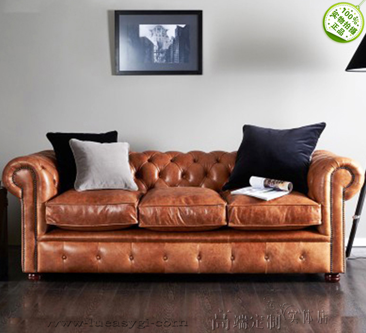 - 歐式美式三人位沙發(fā) 高端個(gè)性復(fù)古家具顏色面料定制 實(shí)木腳酒店家用