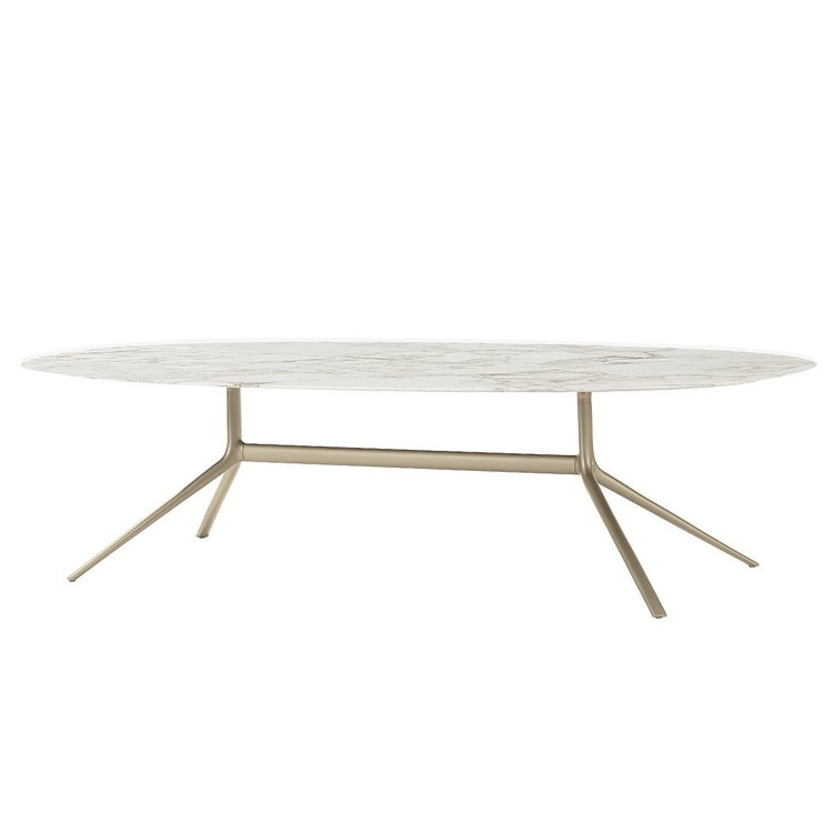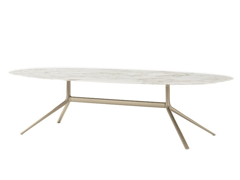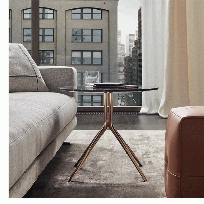 A collection of coffee tables which are light and elegant.? Original structuresin aluminium, available in two sizes, making it easy to combine them with more elements.? These coffee tables supports thin table tops available in a wide range of embellished surfaces.?
