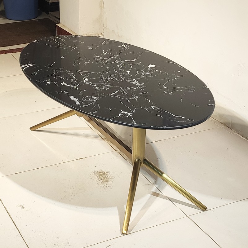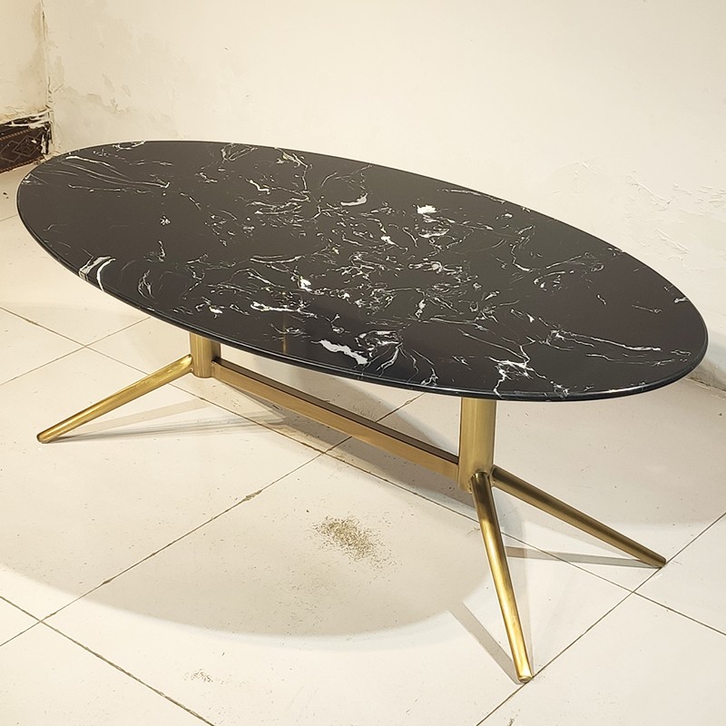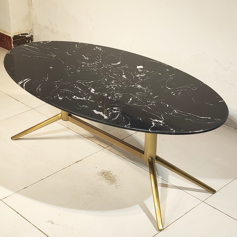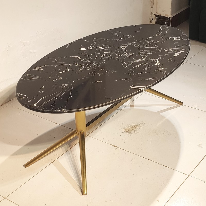 不銹鋼電鍍香檳金 鐵漆金色 大理石 橢圓形圓桌面 人造大理石 帖紙大理石