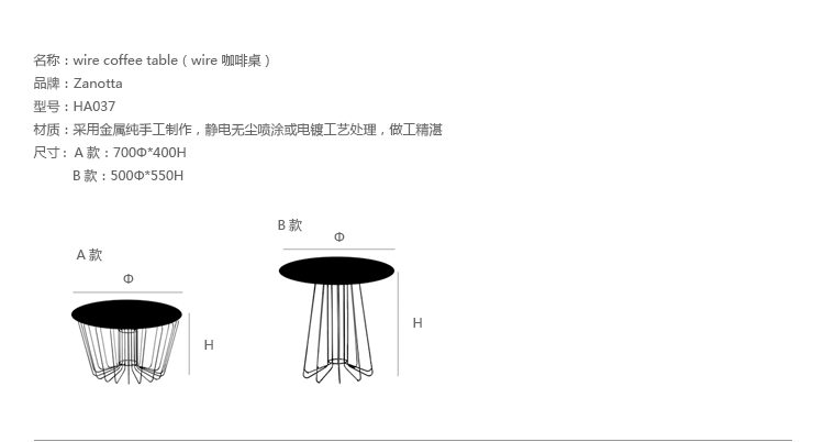 溫馨提示:本公司產(chǎn)品來(lái)自北歐 歐美 設(shè)計(jì)師之手! 所有產(chǎn)品1件起定 ! 面料 顏色 規(guī)格 均可定制 !承接:樣板房,售樓處,別墅,會(huì)所酒店配套家具定制!歡迎來(lái)圖定制!廠家直銷,價(jià)格優(yōu)惠。 專業(yè)定制各種現(xiàn)代休閑家具wire coffee table有關(guān)產(chǎn)品的任何疑問,請(qǐng)與我司銷售顧問聯(lián)系,我們專業(yè)的銷售業(yè)務(wù)團(tuán)隊(duì)將竭誠(chéng)為您提供一站式服務(wù)!