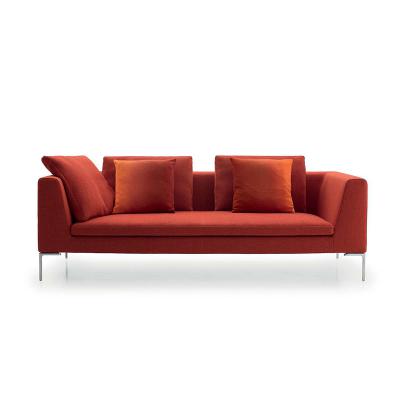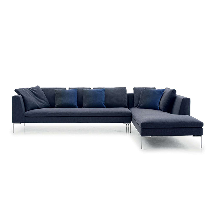 The protagonist of modern lifestyle, it has become the landmark in the world of design.? The light feeling especially conveyed by the essential design of the “inverted “L”- shaped feet, along with a single seat-cushion and a series of free cushions placed on the backrest is the distinctive feature of a sofa that has met with boundless success.? The airy shape and simple profile make it, almost by contrast, extremely rich and innovative from a spatial standpoint, a system that encourages the creation of ever new compositions.? Charles includes an extensive