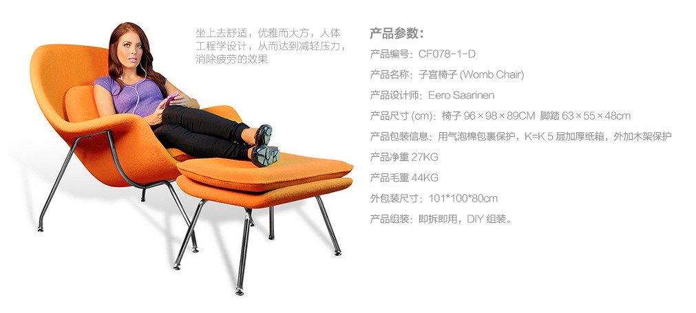 - 子宮沙發(fā)Womb Sofa客廳子宮長椅Eero Saarinen埃羅沙里寧雙人位